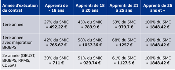 Grille de rémunération de l’apprenti (A la charge du club – au 1er janvier 2026) :
