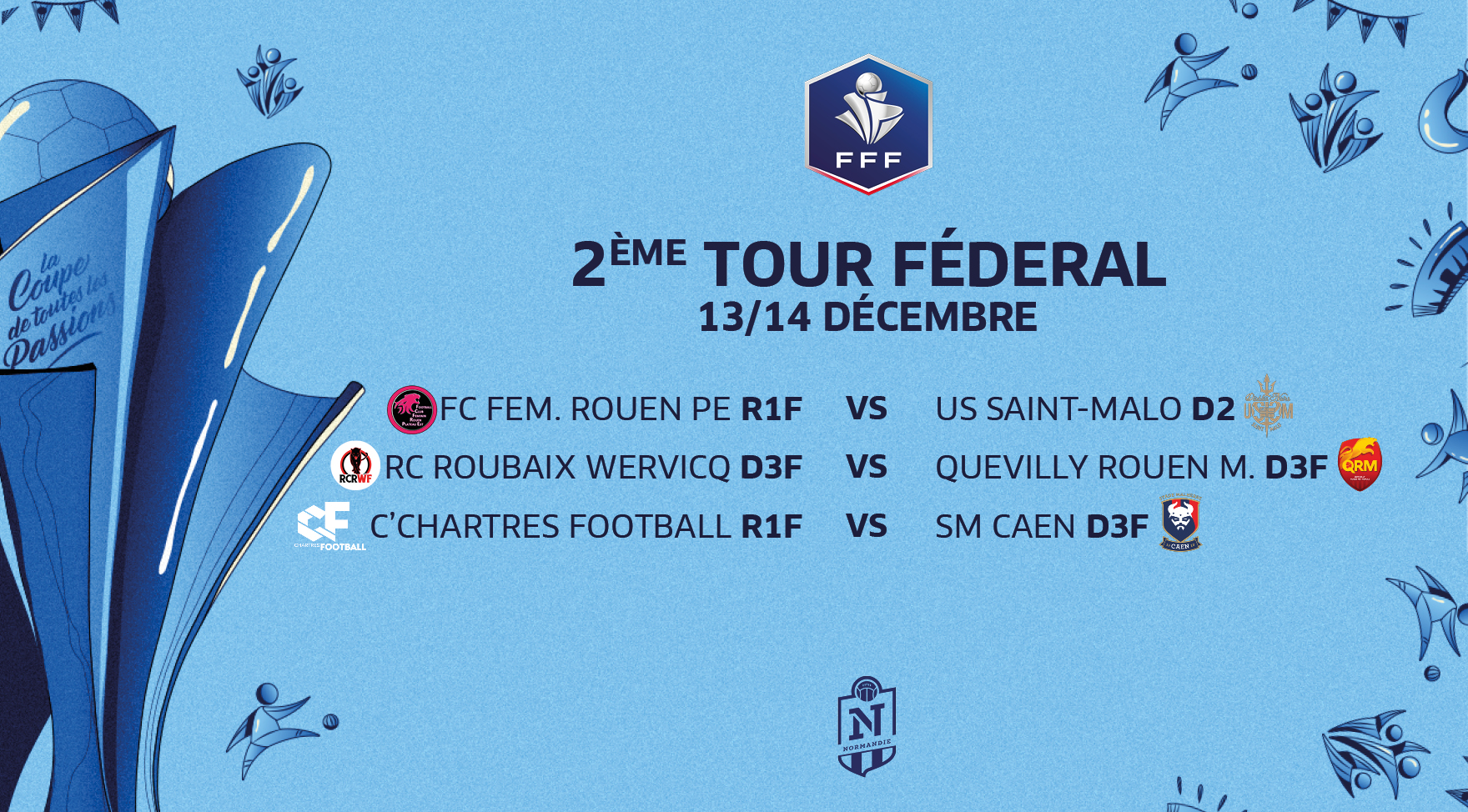 Au terme de ce 1er tour fédéral, la Normandie comptera encore trois représentants : QRM, le SM Caen et le FC Féminin Rouen Plateau Est, connaissent désormais leurs adversaires pour le 2ᵉ tour.