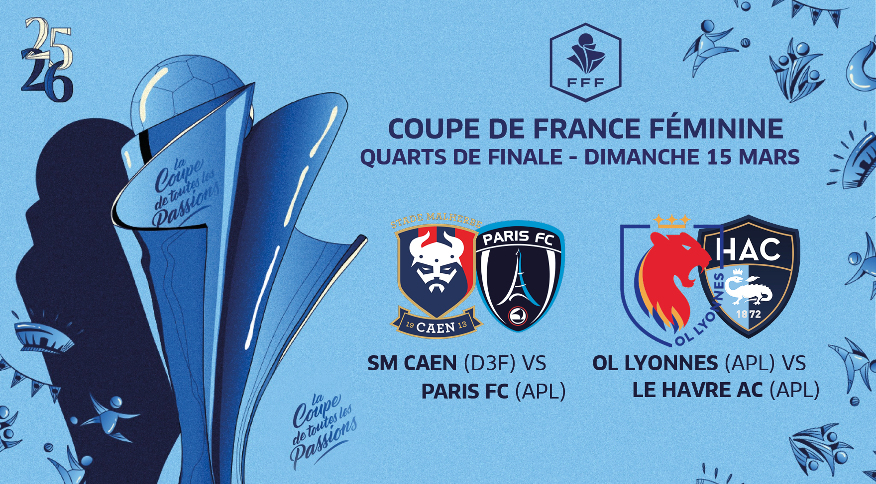 Le Stade Malherbe Caen, véritable « petit poucet » de la compétition, recevra le Paris FC, pensionnaire de l’Arkema Première Ligue. Un défi de taille pour les Caennaises face à une équipe de l’élite. En cas d’exploit, le SMC affrontera en demi-finale soit le Dijon FCO, soit le Paris Saint-Germain.