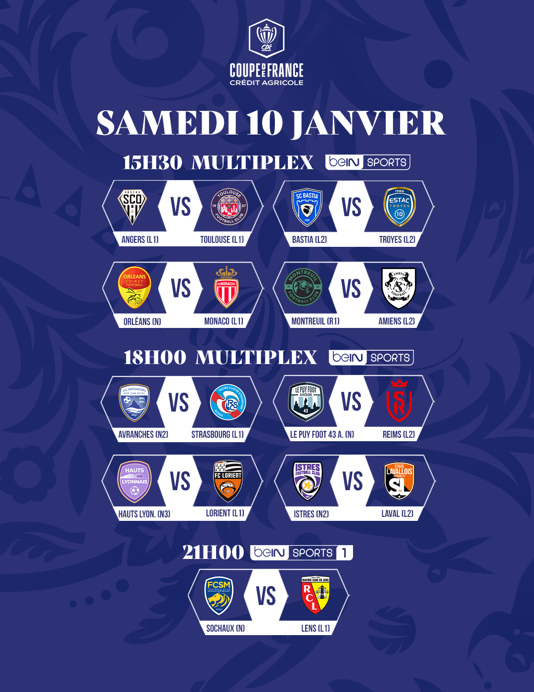 Le match US Avranches MSM – RC Strasbourg se disputera le samedi 10 janvier à 18h. La rencontre sera diffusée en direct sur beIN SPORTS.