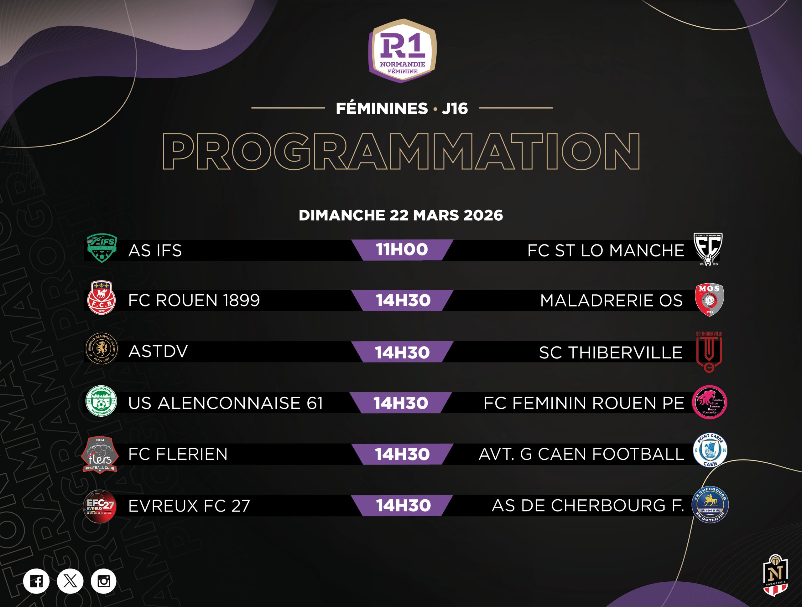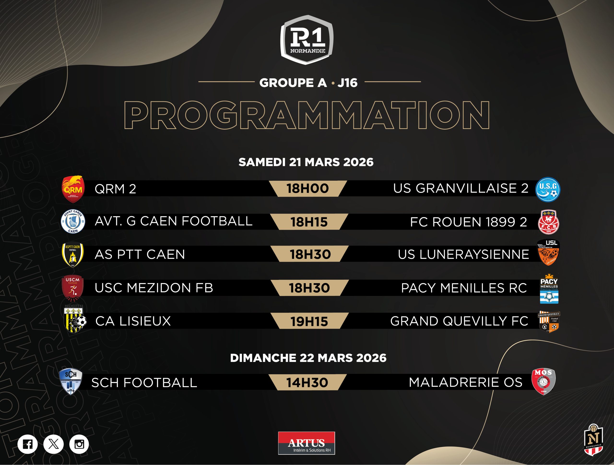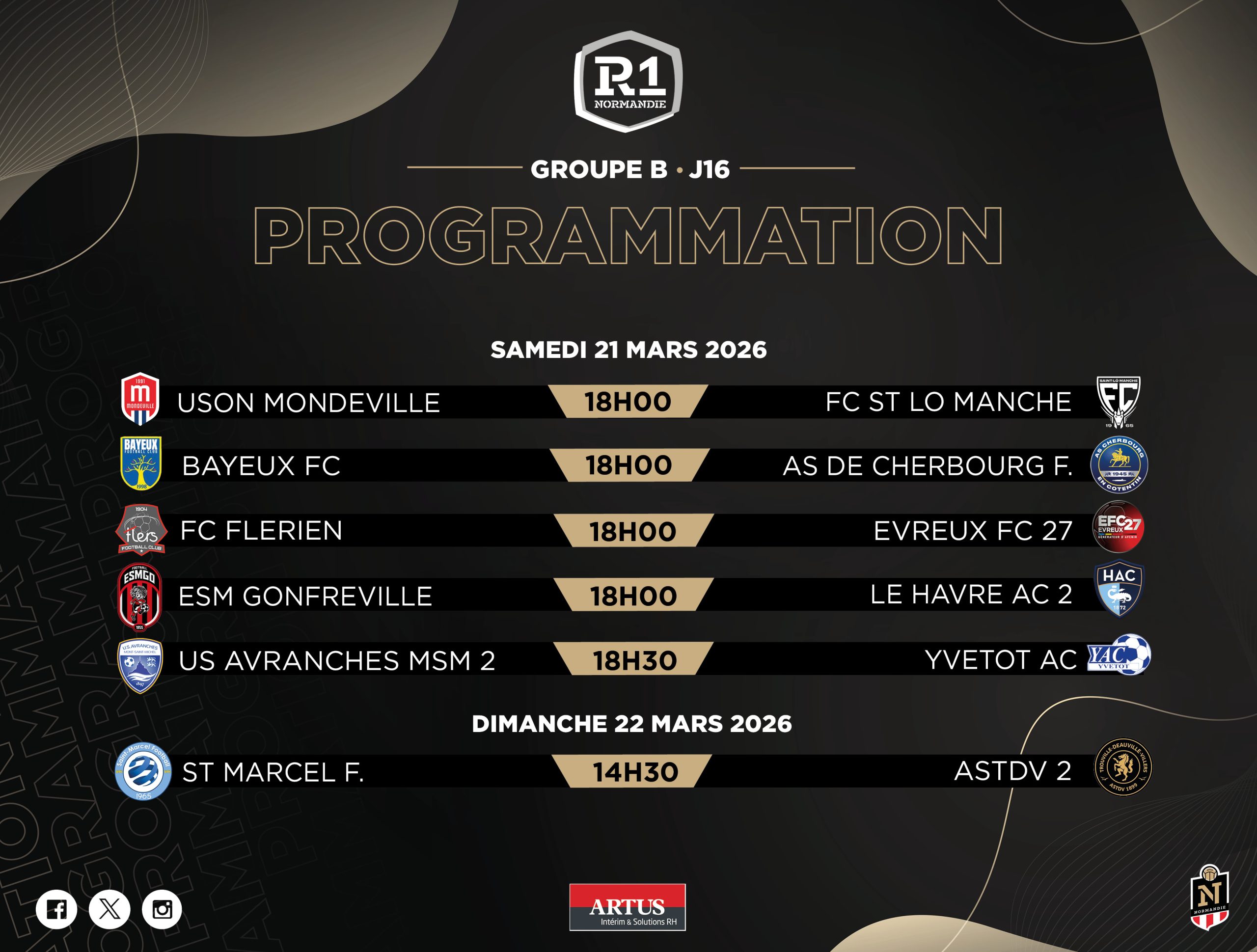 Après deux week-ends intenses, place à la Journée 16. Nos séniors R1 et R1F seront sur le terrain ce samedi 21 et dimanche 22 mars pour des matchs à suivre de près.