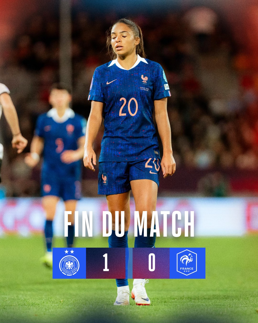 Ce vendredi 24 octobre à Düsseldorf, les Bleues se sont inclinées 1-0 face à l’Allemagne en demi-finale aller de la Ligue des nations. Dominées dès le début de la rencontre, elles ont longtemps résisté grâce à une Pauline Peyraud-Magnin inspirée dans ses cages. Mais la défense française a fini par céder à la 79e minute sur une frappe de Klara Buhl, après de multiples offensives allemandes. Malgré quelques occasions dangereuses, les Françaises ont manqué d’efficacité devant le but. Elles tenteront de renverser la situation mardi 28 octobre à Caen, lors du match retour.