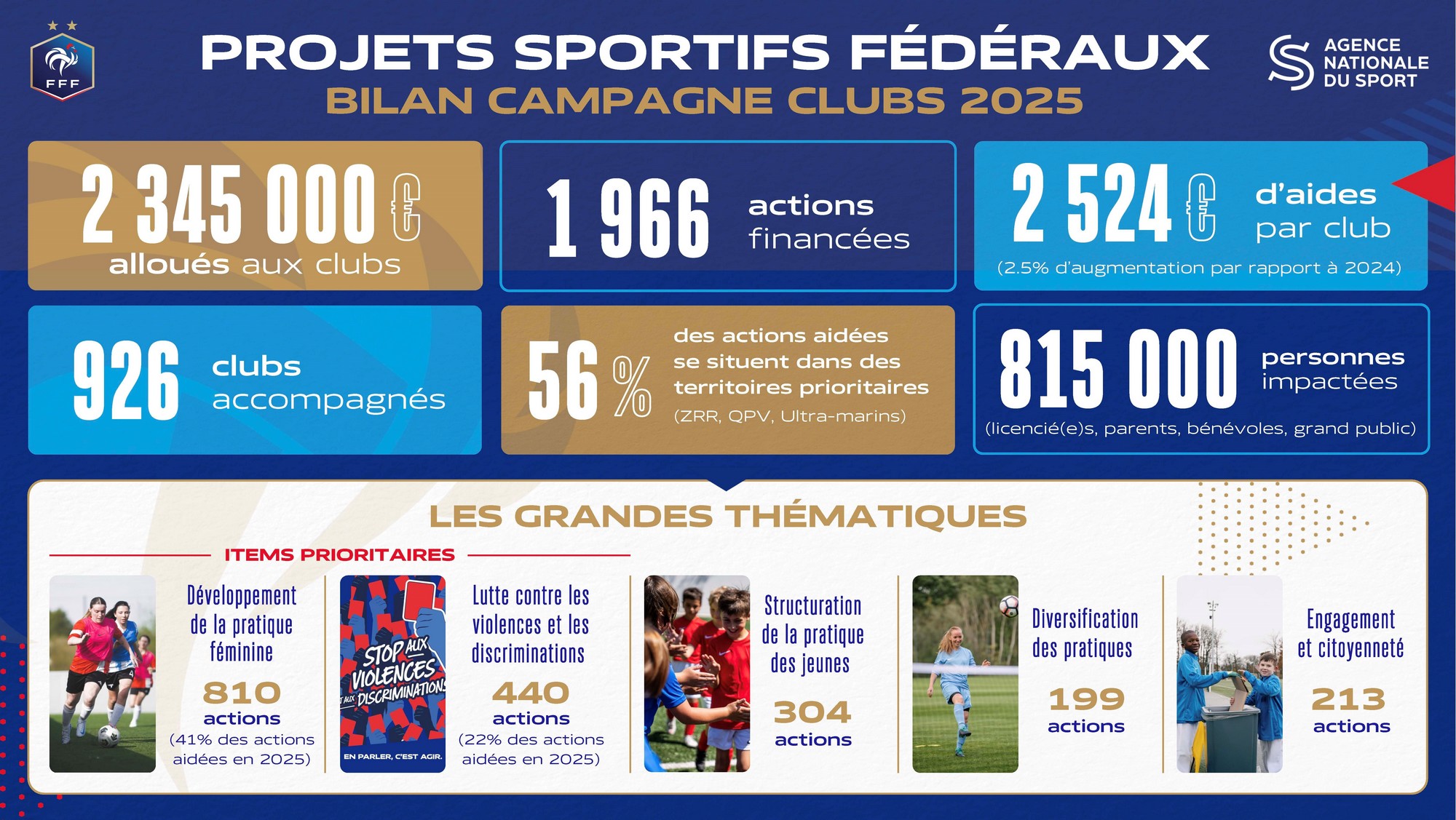 La Fédération Française de Football (FFF), en collaboration avec l’Agence Nationale du Sport (ANS), renouvelle son engagement pour le développement du football amateur avec la campagne 2025 des Projets Sportifs Fédéraux (PSF).