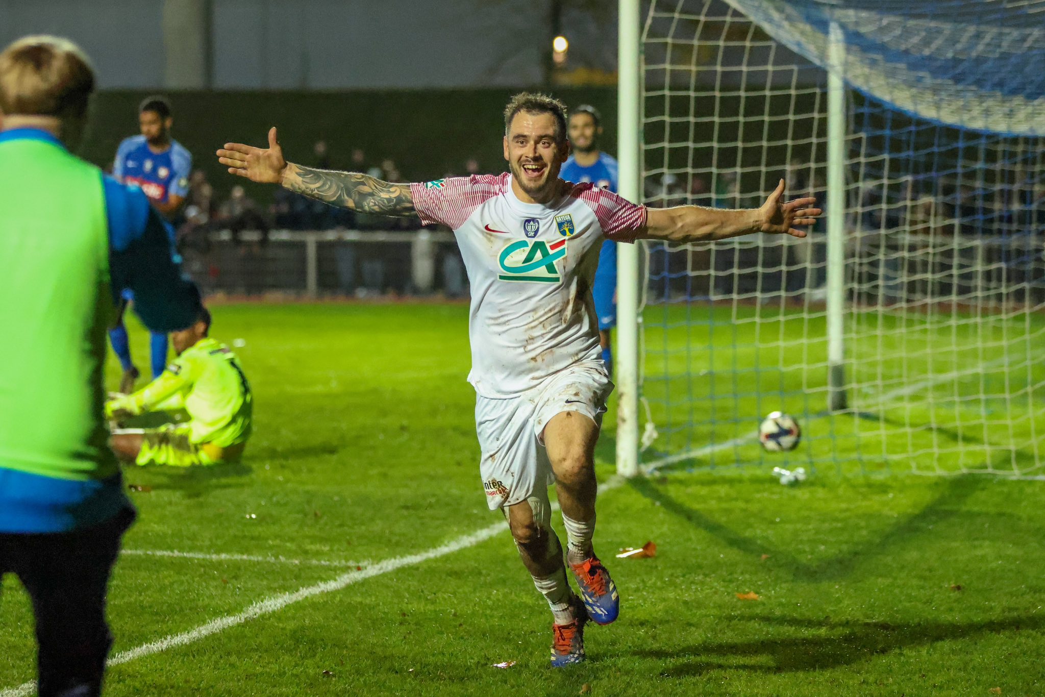 Sensation au stade Henry-Jeanne ! Bayeux, pensionnaire de Régional 1, a créé l’une des grandes surprises de ce 7e tour en éliminant le SM Caen, trois divisions au-dessus. Portés par 3 000 supporters, les Bayeusains ont mené dès la pause et ont fait le break en seconde période grâce à un doublé de Romain Guillotte. Malgré le sursaut caennais de Gomes, l’exploit était scellé.
