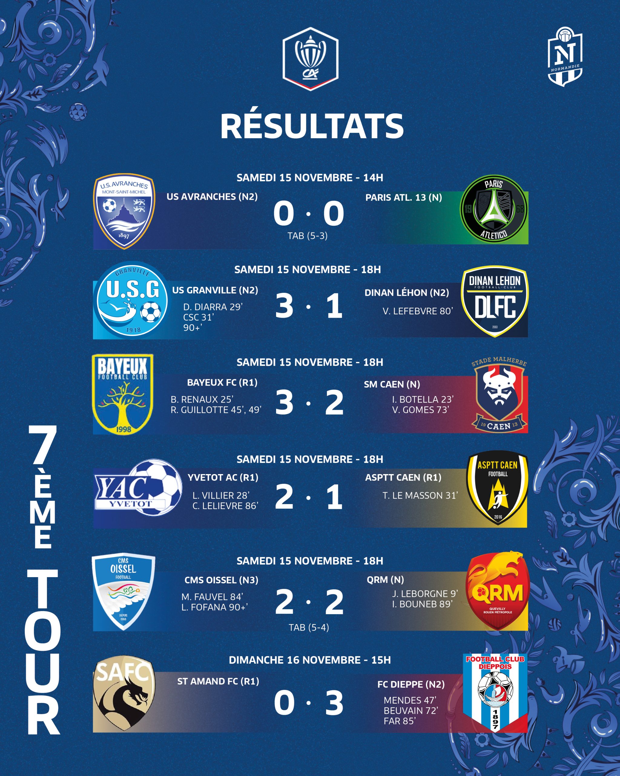 Nouveauté samedi soir, sur les réseaux sociaux de la Ligue de Normandie, un live score était organisé permettant à tous les passionnés du football Normand de suivre les résultats en direct.