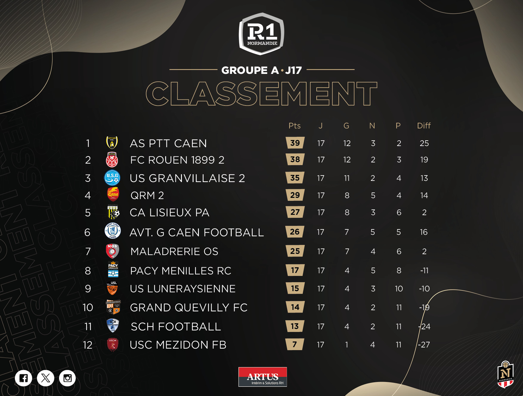 Les classements actualisés viendront compléter cette 17ᵉ journée des championnats de R1 Normandie.