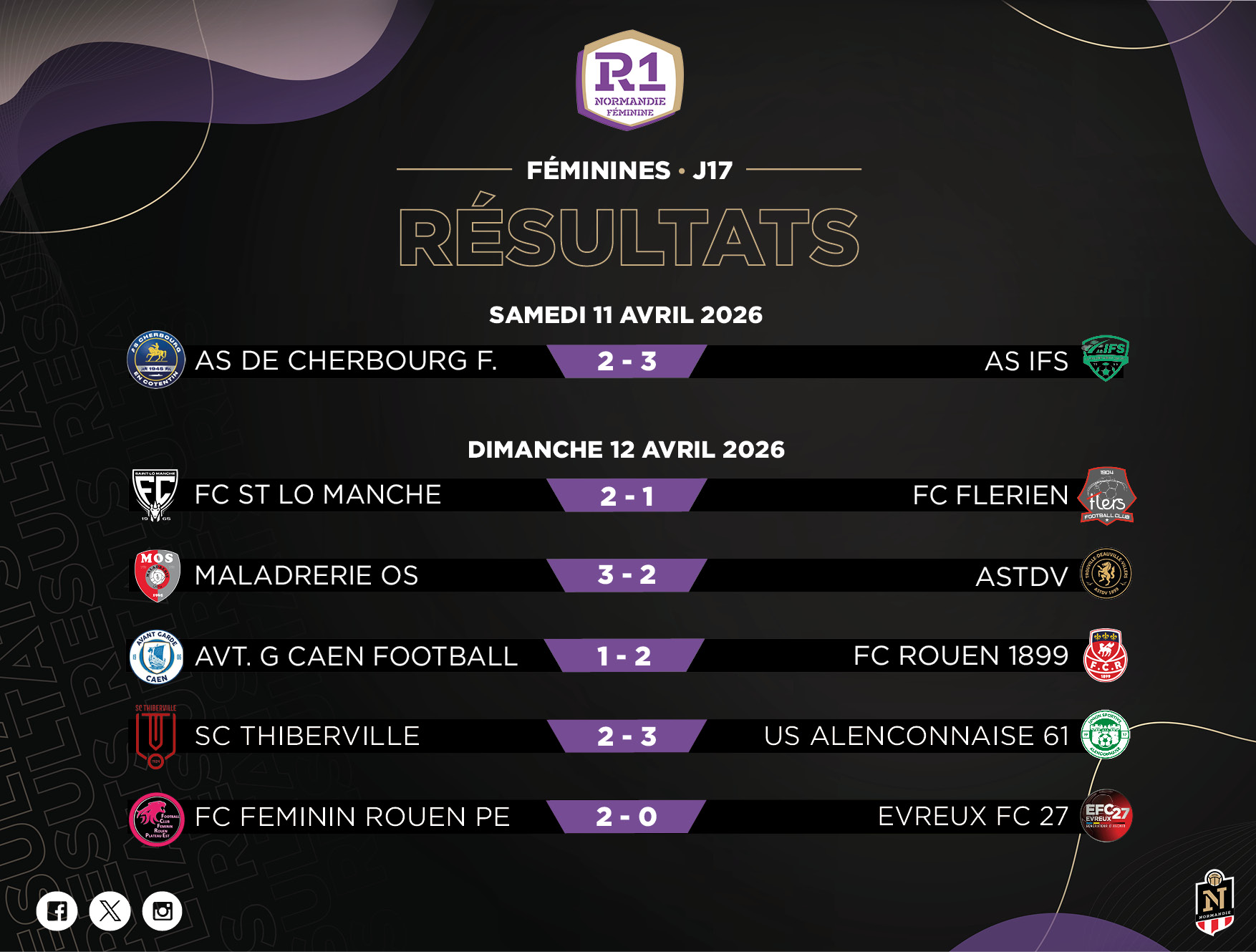 À l’extérieur, le FC Rouen 1899 a signé une belle performance en s’imposant 2-1 face à l’Avant-Garde Caen Football. Elles conservent donc leur première place avec 4 points d’avance.