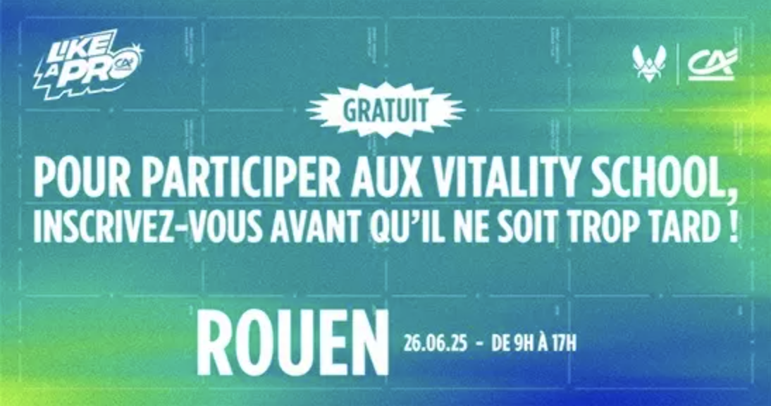 Notre partenaire Crédit Agricole Normandie-Seine, en partenariat avec la célèbre Team Vitality, propose aux jeunes passionnés de gaming de tenter de gagner, une place pour le Summer Tour Esport. Le...